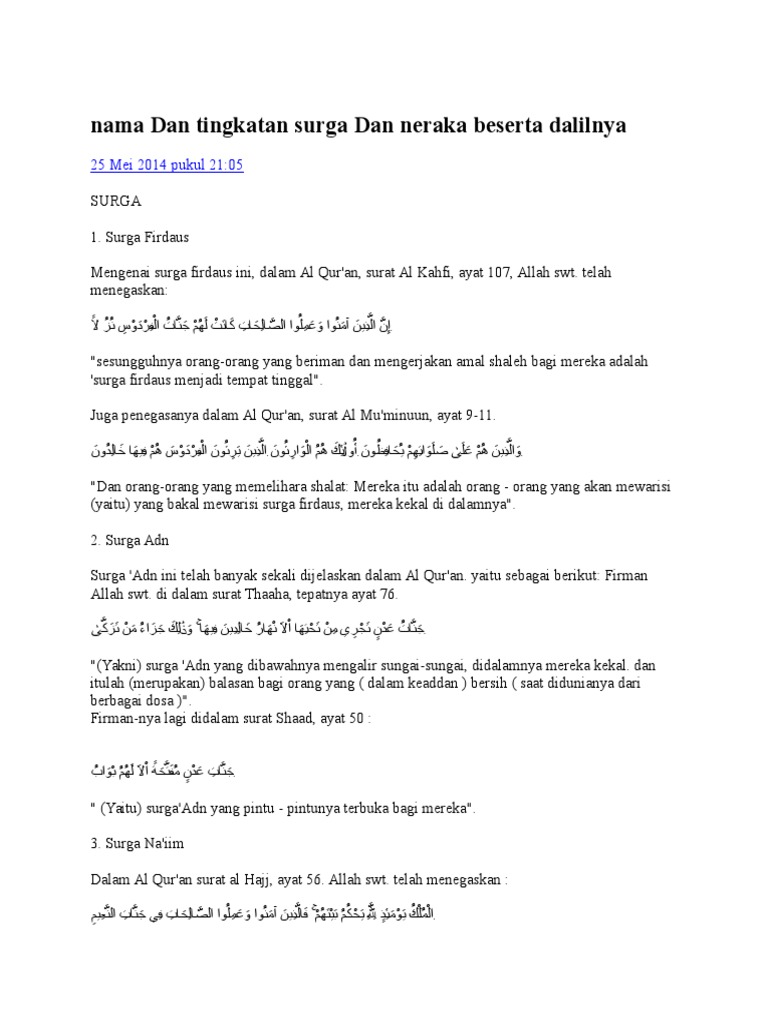Nama Dan Tingkatan Surga Dan Neraka Beserta Dalilnya Pdf